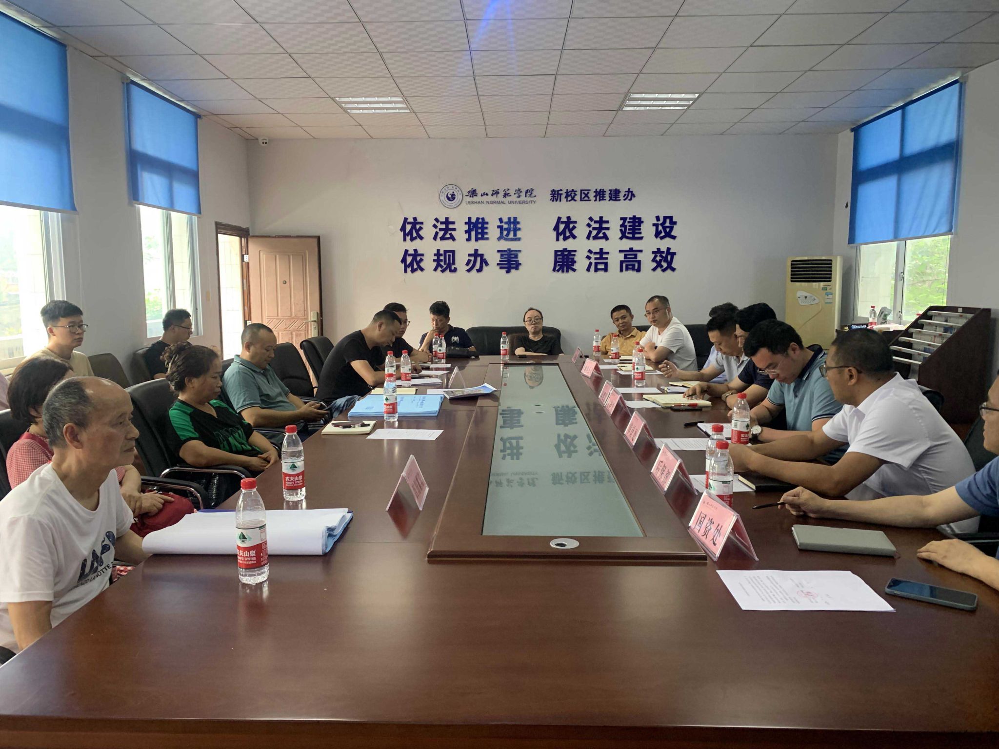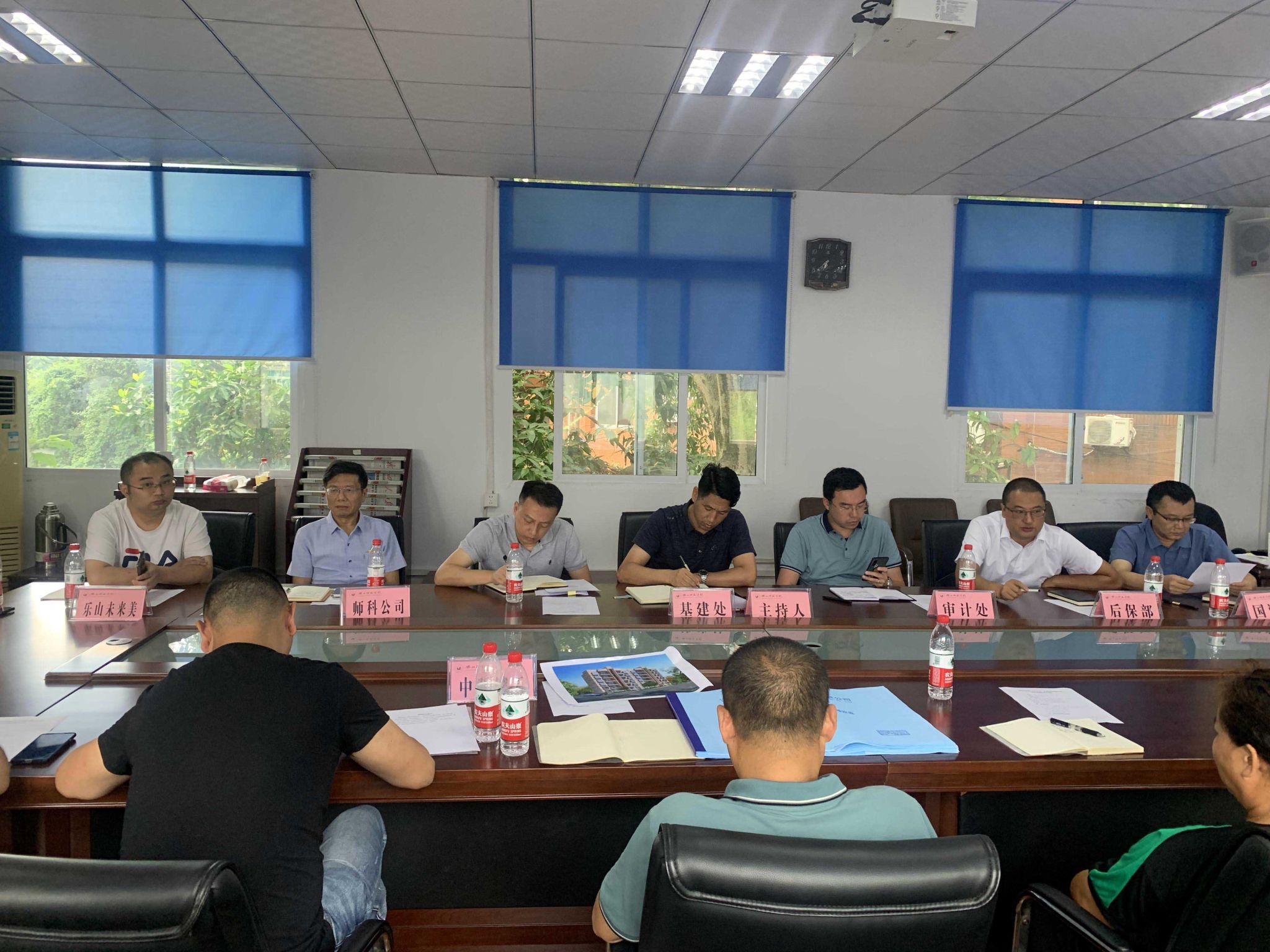 会上,设计单位乐山未来美建筑设计有限公司作了项目设计方案介绍和技术交底。施工单位中旺建工集团有限公司、监理单位四川耀川工程技术有限公司先后作了前期工作汇报和表态发言。随后,国资处、审计处、师科公司、后保部分别就分管业务所涉及的消防资产配置、跟踪审计、空调位预留、安全环保等提出要求。