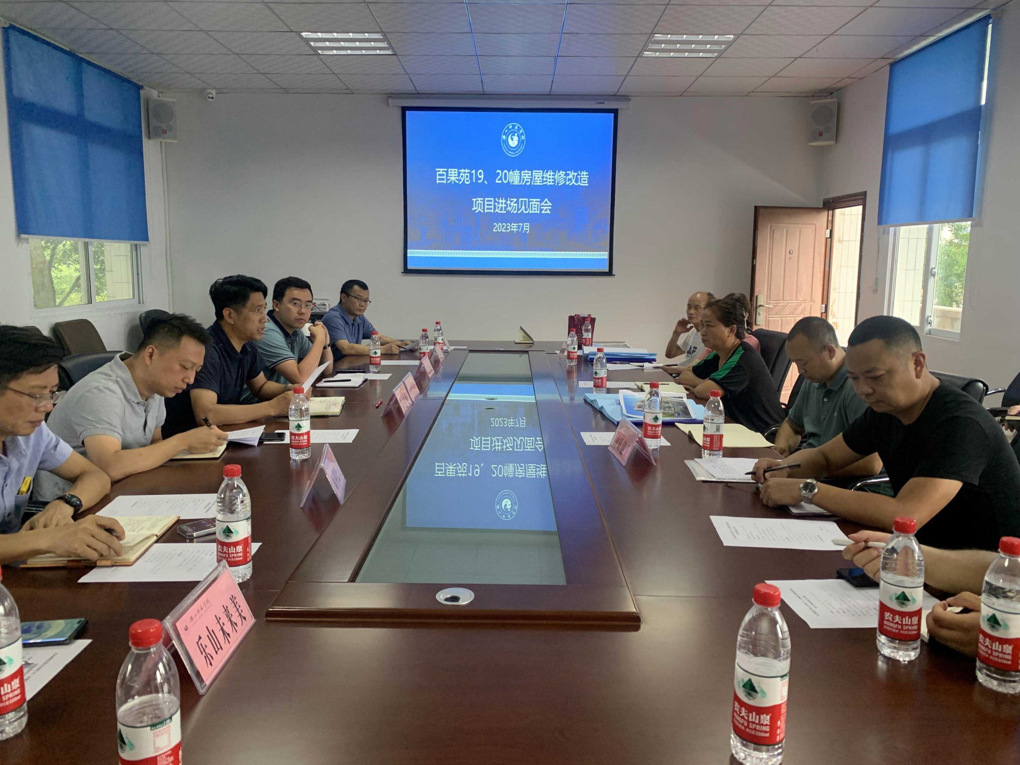 会后,与会人员到百果苑19、20幢进行了现场钥匙交接,并就项目中有关细节问题逐一核实,现场研讨。