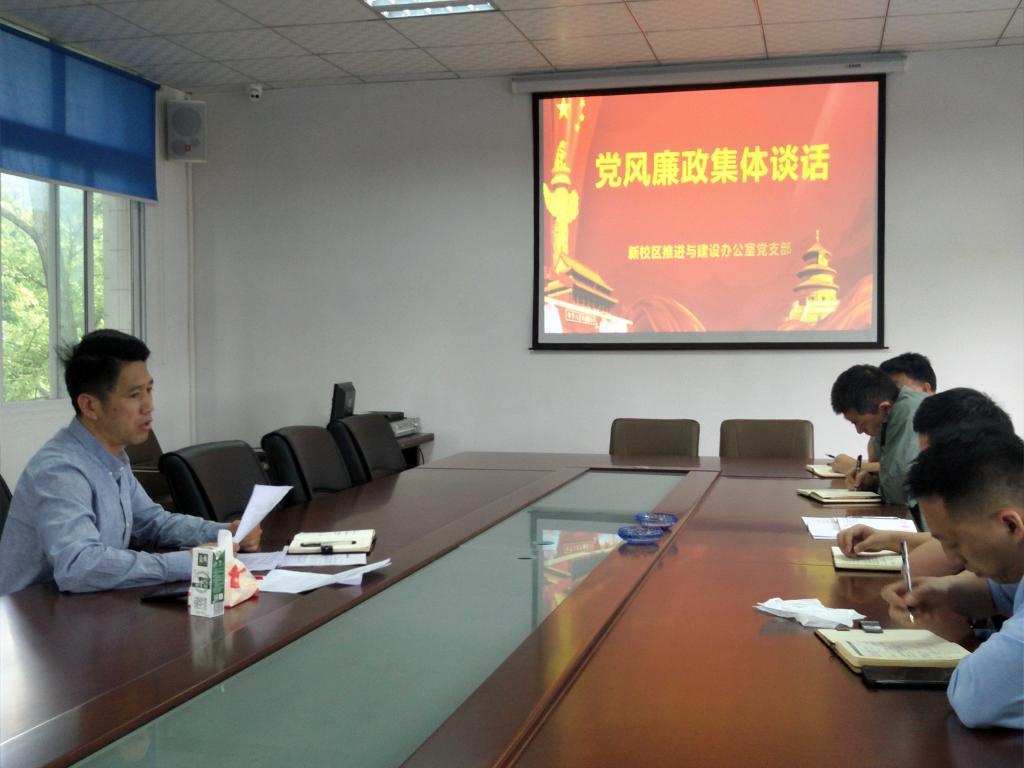 5月17日上午9时,新校区推进与建设办公室在梅庄四楼会议室召开了党风廉政建设集体谈话会。会议由党支部书记、新校区推建办副主任宋天华主持,综合科和工程技术中心的全体党员和教职工参加。