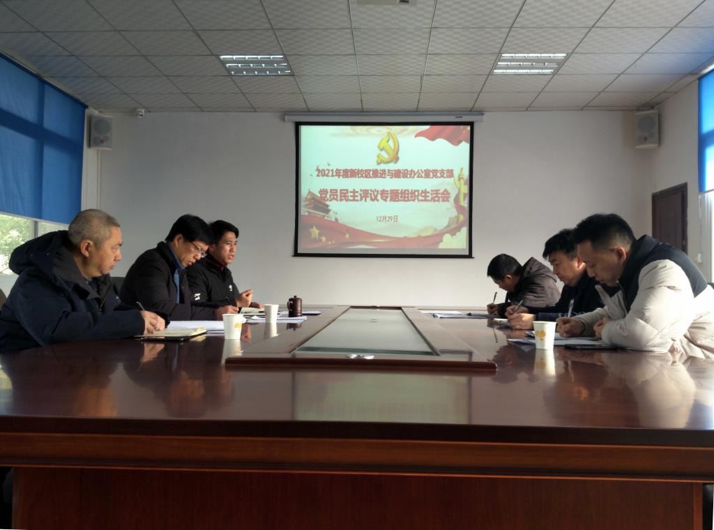 本网讯(文图/杨耀)2021年12月29日上午10时,新校区推建办党支部全体党员在梅庄四楼会议室开展了党员民主评议专题组织生活会。支部书记宋天华主持会议,机关党委委派何永红列席,副校长李朝晖以普通党员身份参加了民主评议活动。|