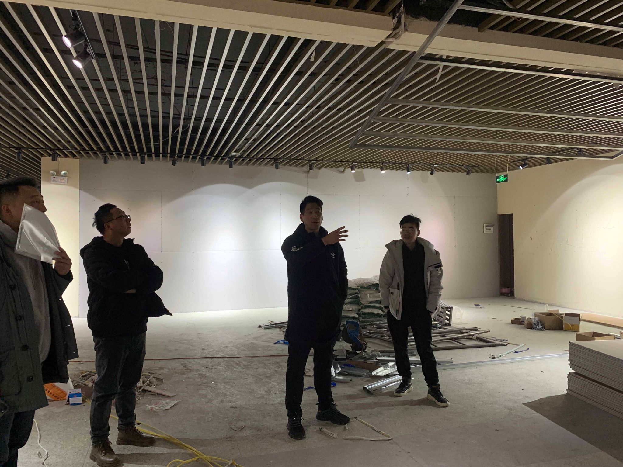 在校史馆改造现场,宋天华一行查看了施工情况,对室内吊顶保留与局部恢复、展墙消火栓预留接口处理、展厅入口岩板材质等细节作了检查指导。他要求施工单位严把质量、严抓工期,按时保质保量完成校史馆改造任务。
