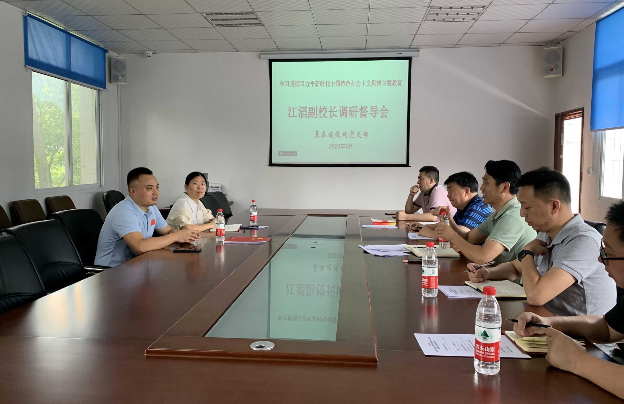 江滔对基建处党支部学习贯彻习近平新时代中国特色社会主义思想主题教育开展情况给予了肯定,并结合基建处工作实际提出了几点要求:一是认真做好新校区项目建设不顺畅的专项主题调研,以习总书记“深、实、细、准、效”的“五字诀”要求把调研工作做好。二是主动谋划新学期工作计划,结合老校区办学条件差的实际,提前做好整改项目储备,根据轻重缓急,统筹思维,通盘考虑,做好项目论证和可行性分析。三是用有限的资金改造校园环境,以师生的诉求和期盼为出发点和落脚点,着力解决师生“急难愁盼”问题。