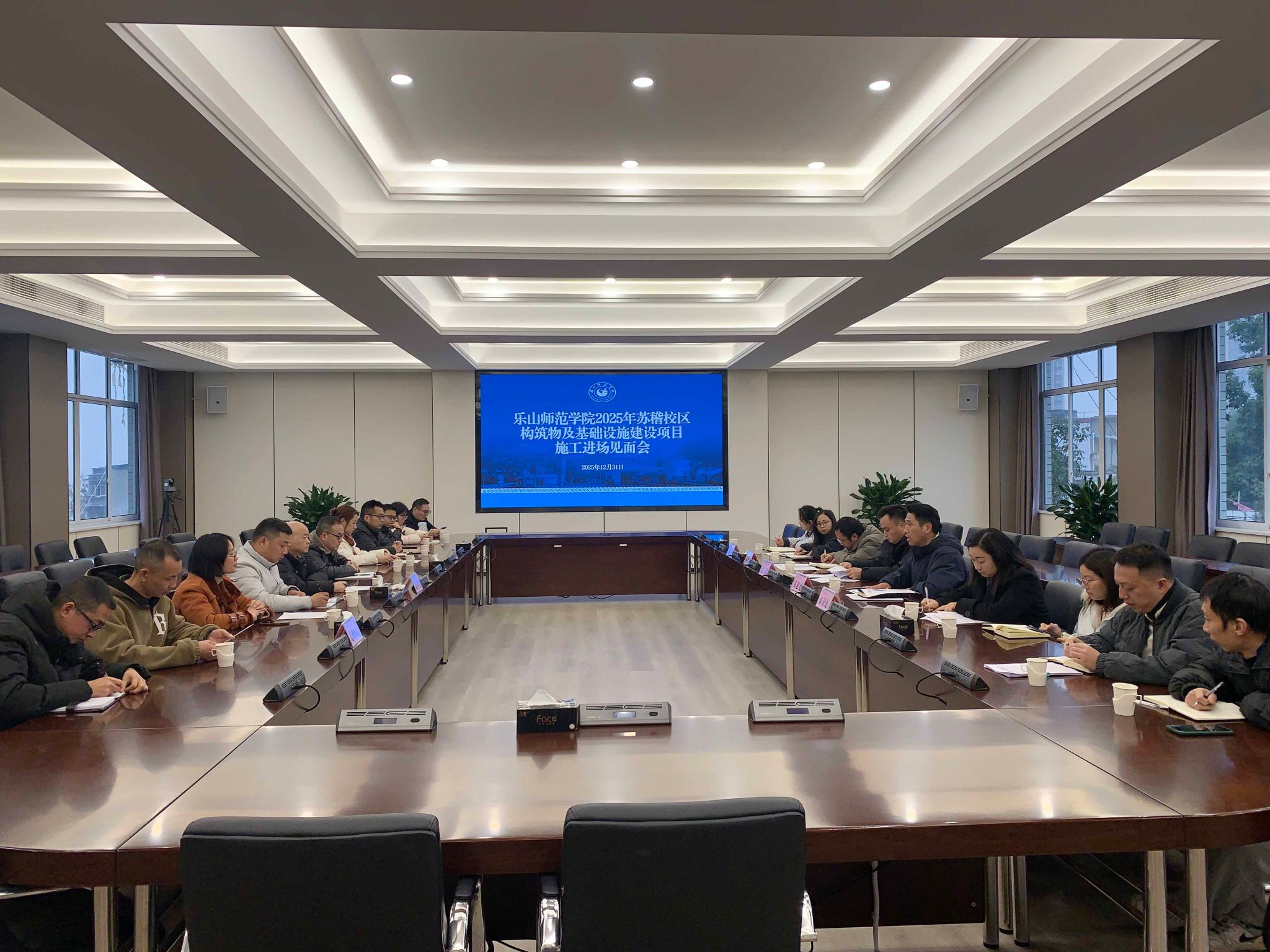 本网讯(图文/杨耀)12月31日上午,“乐山师范学院2025年苏稽校区构筑物及基础设施建设项目”施工进场见面会在弘毅楼第一会议室召开。学校党委常委、副校长江滔出席会议,设计单位(四川创想博世建筑设计有限公司)、监理单位(四川宁胜工程管理咨询有限公司)、施工单位(四川省建筑机械化工程有限公司),以及学校计财处、审计处、国资处、基建处相关负责人参加会议,会议由基建处处长宋天华主持。